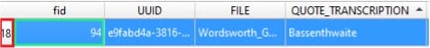 Now imagine that we have assigned geometries and coordinates to all of our unidentified places (for the purposes of this tutorial, we won’t go through all of them). You may have already noticed that the attribute table for Wordsworth-Recogito-GPKG contains many duplicate entries for the same place (e.g. there are multiple rows with instances of Lake Windermere). Left-click on the QUOTE_TRANSRIPTION column header (to sort data alphabetically) to check this. These duplicates represent each individual instance of the annotation within our text. For visualising this data within GIS, however, we need it is more useful to remove these duplicates, cleaning our data. We will walk through this process now.