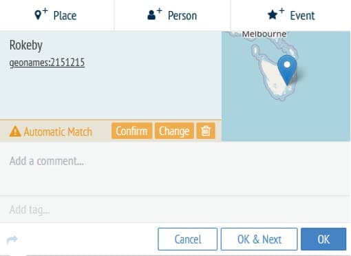 • In this case, our annotation has mistakenly been identified as Rokeby, Australia. We can change this easily by clicking Change, then selecting Rokeby, United Kingdom: