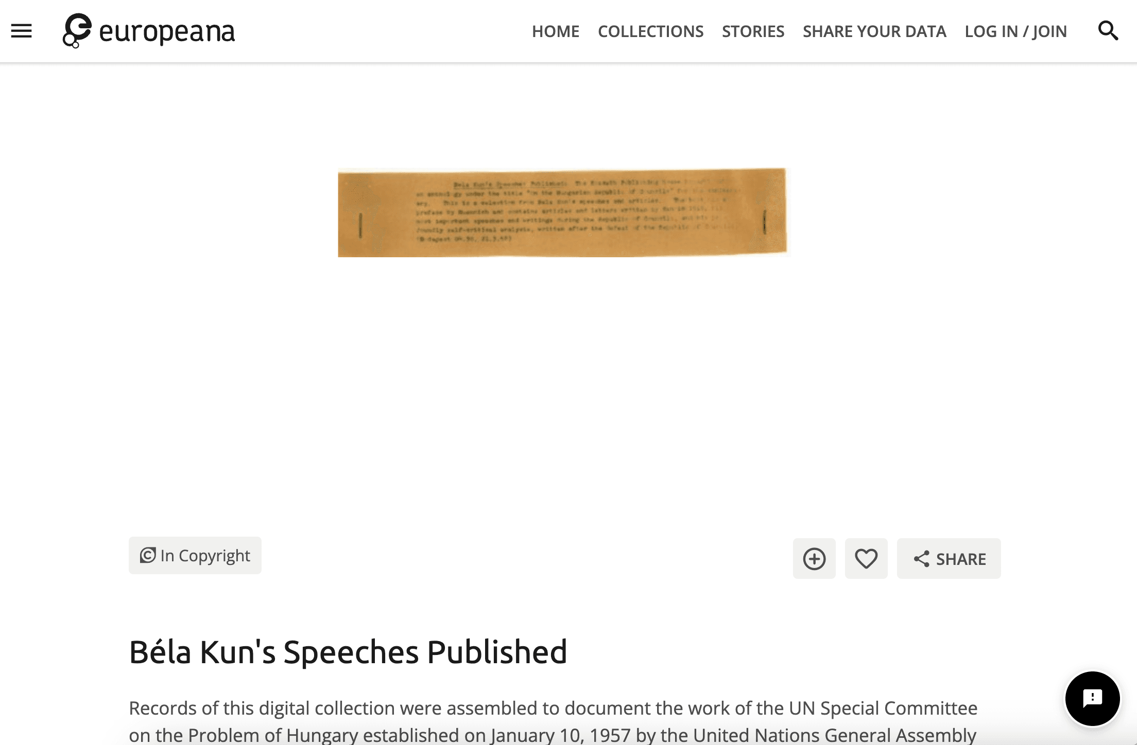 Fig. 1: A screenshot of results retrieved from the Europeana portal using the search term “hungarian revolution”